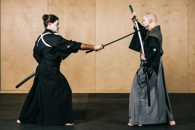 Οι ονειρικής ατμόσφαιρας μονομαχίες παίζουν σημαντικό ρόλο στην προώθηση της δραματουργικής πλοκής και στην έκθεση των φιλοσοφικών ερωτημάτων που προκύπτουν. Έτσι, ο ποιητικός λόγος, οι σκηνικοί κώδικες της αρχαίας τραγωδίας και η κινησιολογική φόρμα συμπληρώνονται ιδανικά από τις πολεμικές-παραστατικές τέχνες του Aikido και του Iaido.