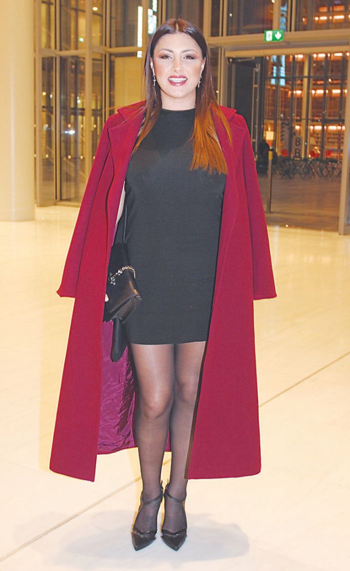 Η «Number 1» Ελληνίδα της Eurovision επέλεξε ένα chic και σέξι outfit, ιδανικό για την περίσταση. Φόρεσε μαύρο μίνι στενό φόρεμα που αναδείκνυε τη σιλουέτα της, μαύρες γόβες και μπορντό παλτό που απογείωσε το στιλ της, ενώ πόζαρε χαμογελαστή στον φακό, κλέβοντας την παράσταση.