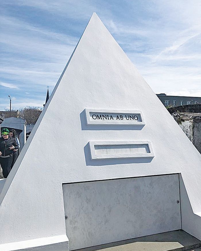 Ο εκκεντρικός ηθοποιός, ο οποίος φαίνεται ότι αν μη τι άλλο διαθέτει μαύρο χιούμορ, ξενάγησε τη νέα σύντροφό του στον τάφο σε σχήμα πυραμίδας που αγόρασε για τον εαυτό του το 2010. Το μνημείο, ύψους σχεδόν 3 μέτρων, φέρει τη λατινική φράση «omnia ab uno», δηλαδή «όλα από ένα», και θα αποτελέσει, σύμφωνα με δηλώσεις του, την τελευταία του κατοικία.