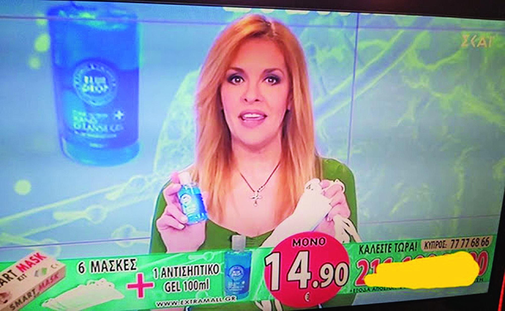 Η γνωστή παρουσιάστρια δέχτηκε και εκείνη τα πυρά χιλιάδων καταναλωτών-τηλεθεατών, λόγω της διαφήμισης που παρουσίαζε στο κανάλι Έψιλον, όπου εν μέσω τρόμου της πανδημίας του κορωνοϊού πωλούσε έξι μάσκες και ένα τζελ αντί 14,99, συν 10 ευρώ έξοδα αποστολής.
