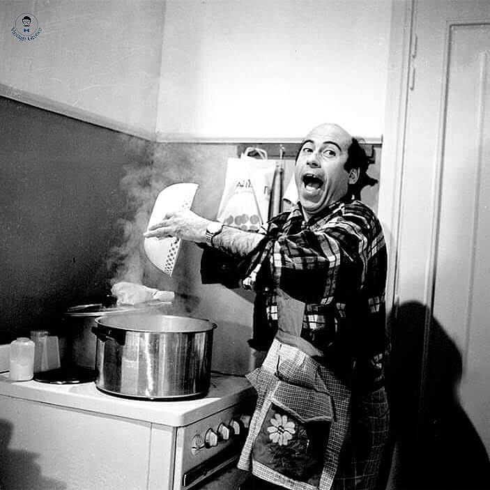 Ο «καλός μας άνθρωπος», ο ηθοποιός που συνύφανε το γέλιο και τη χαρά με την ύπαρξή του, αλλά και με την καλλιτεχνική του πορεία στη συνείδηση όλων μας, σε μία αυθόρμητη φωτογραφία από την κουζίνα του, όπου μαγειρεύει.