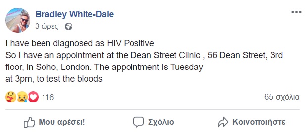 Πρόσφατα ο ταλαντούχος τραγουδιστής είχε παραχωρήσει συνέντευξη σε γνωστό ελληνικό περιοδικό και αποκάλυψε πως έδινε μεγάλη μάχη με τα ναρκωτικά. Η μοίρα όμως του έπαιξε και άλλο άσχημο παιχνίδι, και σήμερα το μεσημέρι μας ενημέρωσε, μέσω της προσωπικής του σελίδας στο Facebook, ότι βγήκε θετικός στον HIV.
