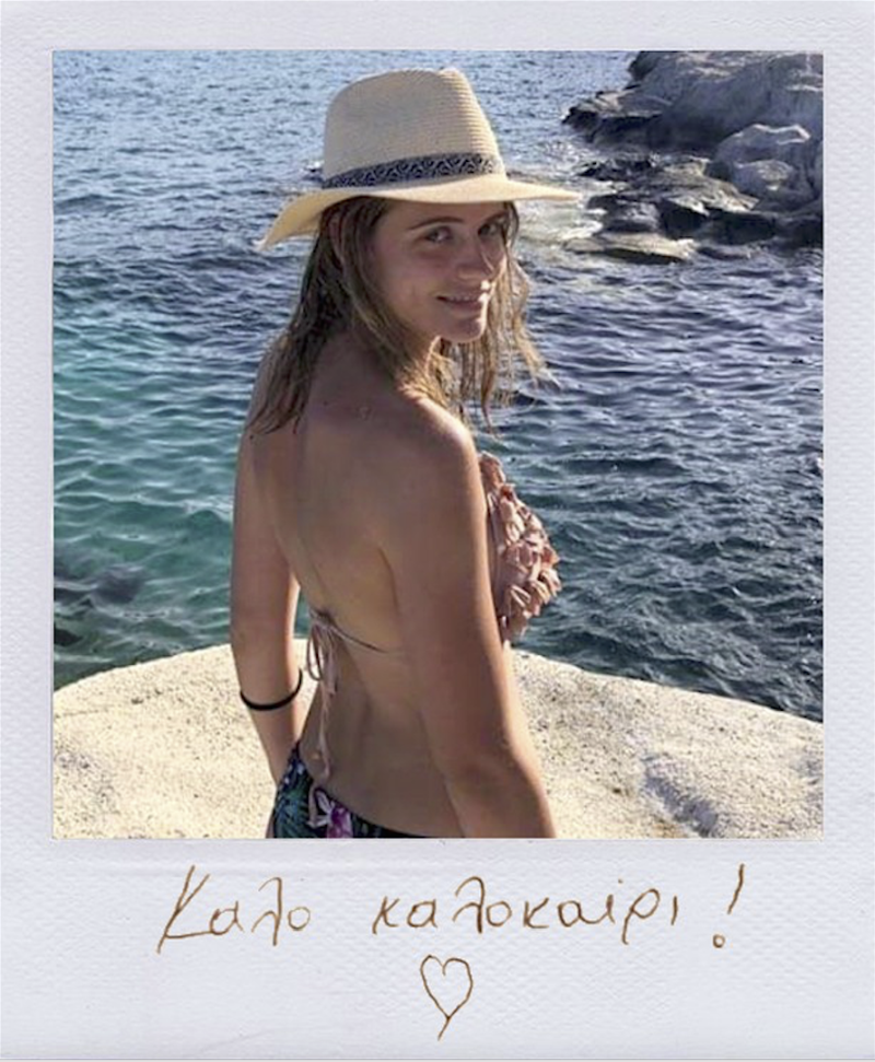 Ιδού και η απόδειξη: μια παλιότερη φωτογραφία της με μαγιό, η οποία δημοσιεύτηκε στα social media του AΝΤ1, στο πλαίσιο της πρωτοβουλίας του καναλιού να ευχηθούν όλα τα αστέρια του καναλιού καλό καλοκαίρι με μια Polaroid φωτογραφία!
