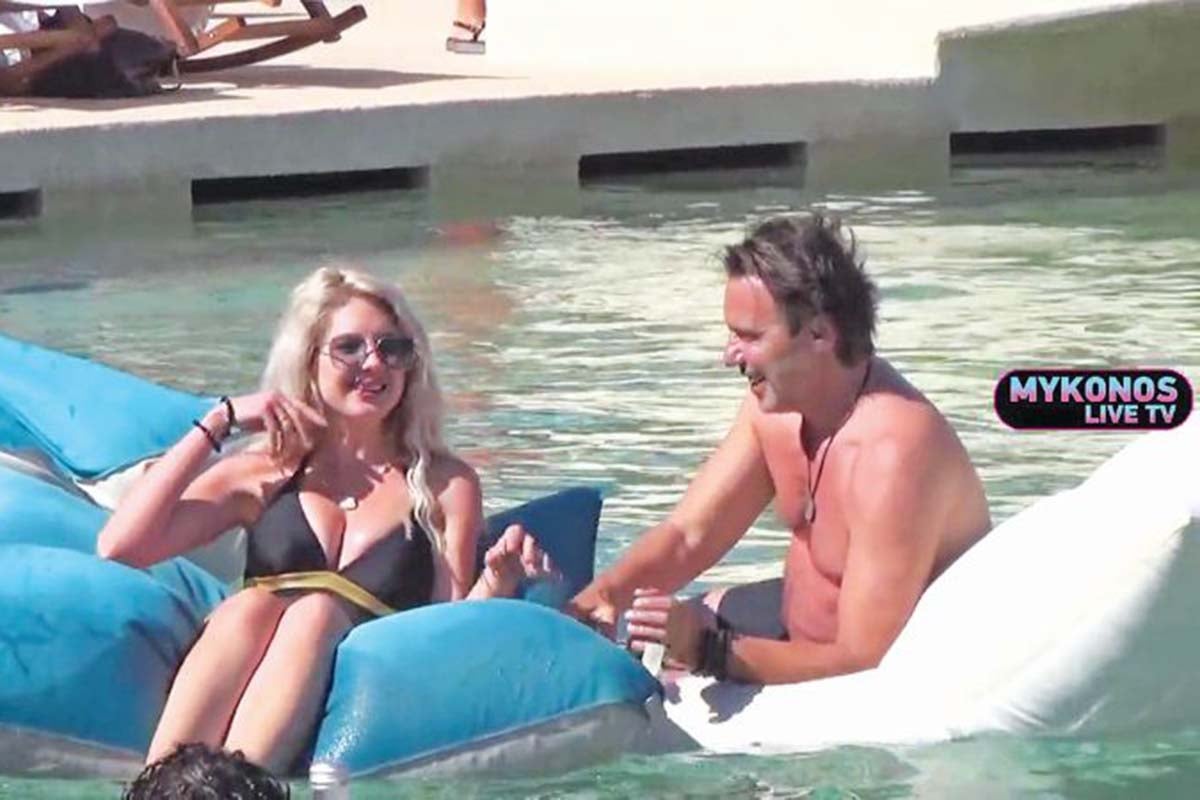 Μάλιστα το ζευγάρι δεν… κρατιέται ούτε στις δημόσιες εμφανίσεις του. Απόδειξη; Η εμφάνισή του στο Santanna στην Παράγκα της Μυκόνου, όπου το πέτυχε η κάμερα του τοπικού καναλιού Mykonos Live TV. Ο δημοφιλής ηθοποιός και η όμορφη δασκάλα μουσικής, που ασχολείται πλέον και με το μόντελινγκ, εκτός από τα παιχνιδάκια στα οποία επιδόθηκαν, αντάλλαξαν επίσης καυτά φιλιά και αγκαλιές μέσα στην πισίνα, κάνοντας πολλά βλέμματα θαμώνων να πέσουν πάνω τους.