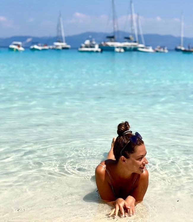 Οι δυο τους, μάλιστα, ταξίδεψαν με σκάφος και στους Αντιπαξούς, με τη Βάσω να πιάνει το τιμόνι, αναλαμβάνοντας χρέη καπετάνισσας. Όπως ήταν επόμενο, τα πειράγματα του άντρα της δεν είχαν τέλος, με τον σεφ να ανεβάζει εικόνες στο Instagram και να σχολιάζει με χιούμορ την εκλεκτή της καρδιάς του. Και η γνωστή ηθοποιός, πάντως, δεν έχασε την ευκαιρία να μοιραστεί με τους followers της στα social media φωτογραφίες από τις βουτιές τους στα κρυστάλλινα νερά.