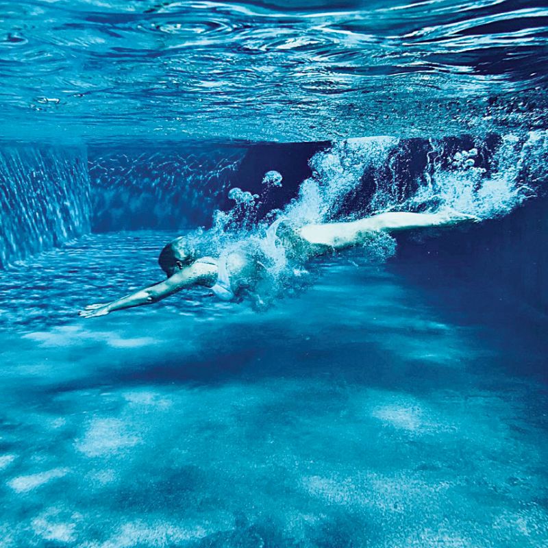 Στο «κλικ» η δυναμική ξανθιά anchorwoman καταδύεται στον πυθμένα της πισίνας φορώντας το μαγιό της, στιγμιότυπο που πιθανότατα ενίσχυσε με κάποιο φίλτρο και το αποτέλεσμα που προέκυψε μοιάζει με έργο τέχνης, βγαλμένο από κάποια έκθεσης φωτογραφίας με υποβρύχιες λήψεις.