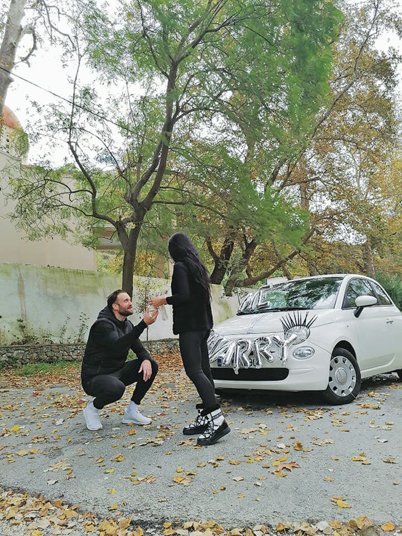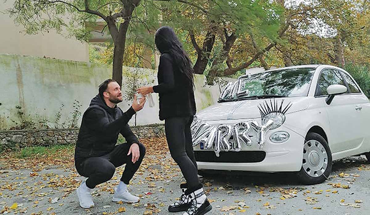 Η έκπληξη της όμορφης Μαρίας ήταν εμφανής, καθώς δεν περίμενε ότι ο καλός της θα συνόδευε την πρότασή του με ένα τέτοιο δώρο! Την πρόταση και το δώρο ακολούθησε φυσικά ο γάμος, ο οποίος πραγματοποιήθηκε χθες το πρωί στο δημαρχείο Βρυσών, με παρισταμένους μόνο την οικογένεια του ζευγαριού, λόγω κορονοϊού.