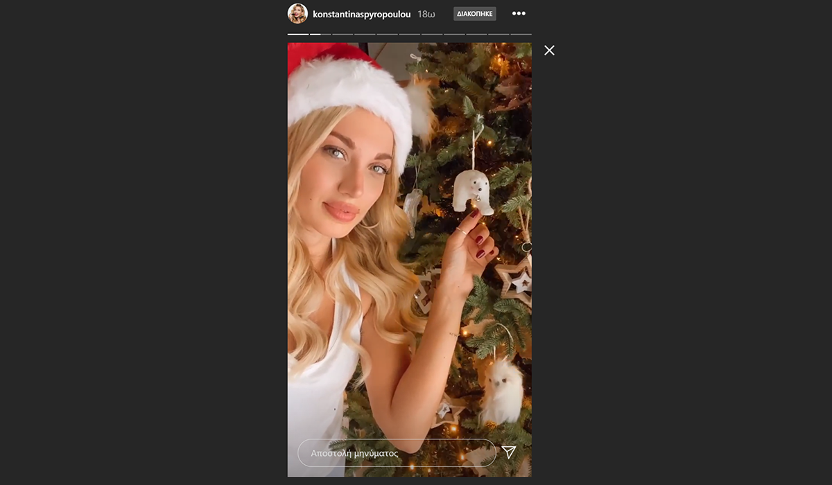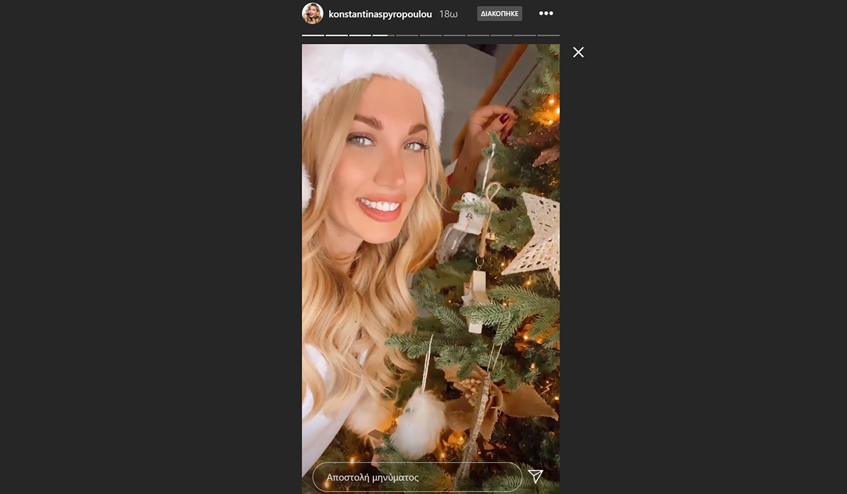 Η εντυπωσιακή Κωνσταντίνα Σπυροπούλου μπορεί φέτος να απέχει από τα τηλεοπτικά πλατό όπως την έχουμε συνηθίσει, ωστόσο φροντίζει να ενημερώνει τους διαδικτυακούς της φίλους στο Instgram για το πως περνάει στην καθημερινότητα της. Έτσι λοιπόν η αγαπημένη παρουσιάστρια στόλισε το χριστουγεννιάτικο δέντρο του σπιτιού της και ανέβασε φωτογραφίες με το πιο λαμπερό της χαμόγελο, βάζοντας μια κόκκινη καρδιά και το όνομα του αγαπημένου της Βασίλη Σταθοκωστόπουλου.