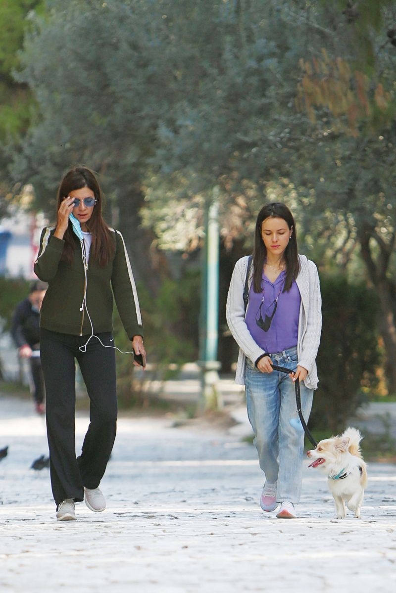 Την ίδια ώρα, στον πολυσύχναστο -ακόμη και την περίοδο του lockdown- πεζόδρομο της Διονυσίου Αρεοπαγίτου εθεάθησαν δύο ακόμη γνώριμες φυσιογνωμίες: η Μαριαλένα Ροζάκη, η οποία κρατά φέτος βασικό ρόλο στο νέο «Καφέ της Χαράς», και η Κατερίνα Λέχου.