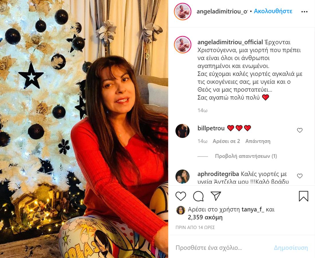 Η Άντζελα Δημητρίου στολίζει το δικό της ιδιαίτερο χριστουγεννιάτικο δέντρο. Με ανάρτηση της στο προσωπικό της λογαριασμό στο Instagram, η τραγουδίστρια το μοιράστηκε με τους διαδικτυακούς της φίλους, αναρτώντας μια φωτογραφία και στέλνοντας το δικό της ευχητήριο μήνυμα σε όλους.