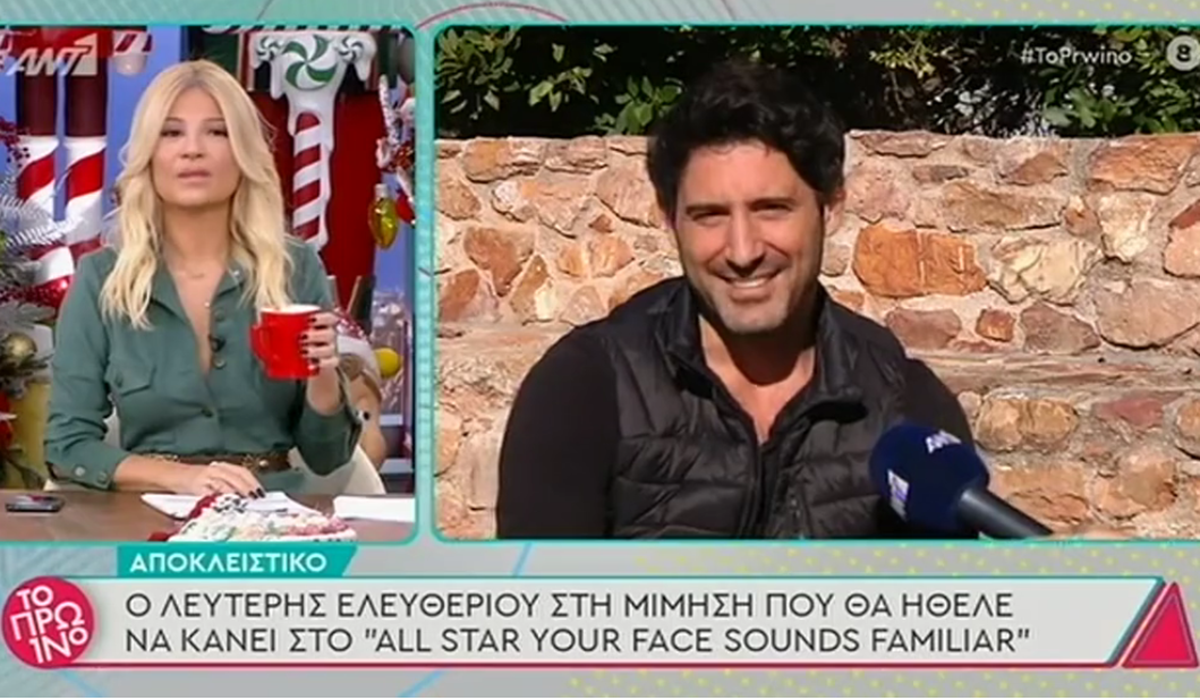 Ο Λευτέρης Ελευθερίου μιλάει στην κάμερα του «Πρωινού» για την συμμετοχή του στην all star εκδοχή του «Your Face Sounds Familiar» που ετοιμάζεται να κάνει πρεμιέρα το επόμενο διάστημα. Ο ίδιος δεν έκρυψε τον ενθουσιασμό του και την έκπληξη του, όταν έμαθε ότι θα είναι ανάμεσα στους καλύτερους παίκτες που πέρασαν από το show μεταμορφώσεων του ΑΝΤ1. Ο ηθοποιός ανέφερε κάποιες από τις εμφανίσεις του, που ξεχώρισαν στο παρελθόν περισσότερο από το τηλεοπτικό κοινό.