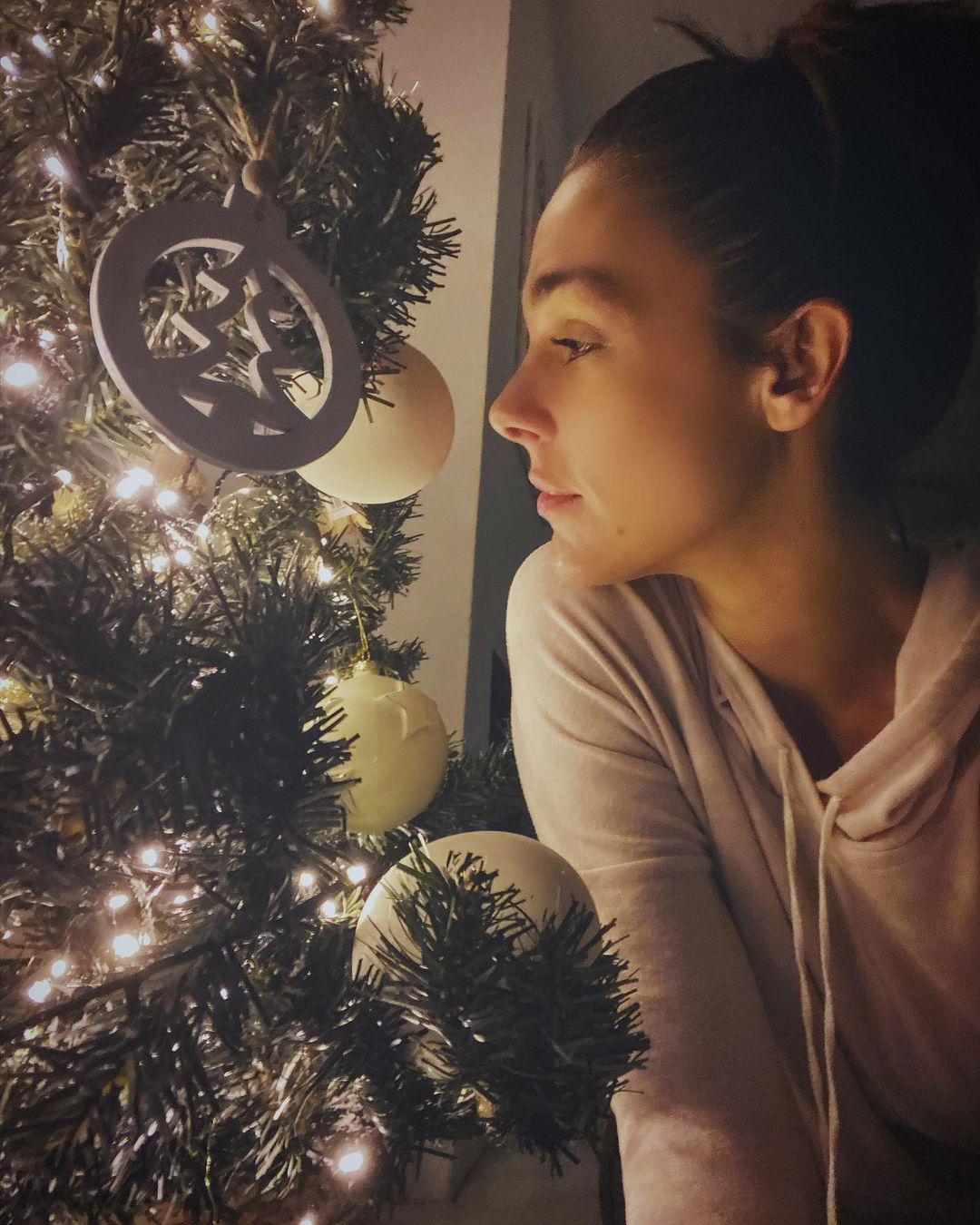 «Εσείς τα λέτε με τα χριστουγεννιάτικα στολίδια ή είστε τίποτα αντικοινωνικοί?», γράφοντας χαρακτηριστικά στην λεζάντα της.