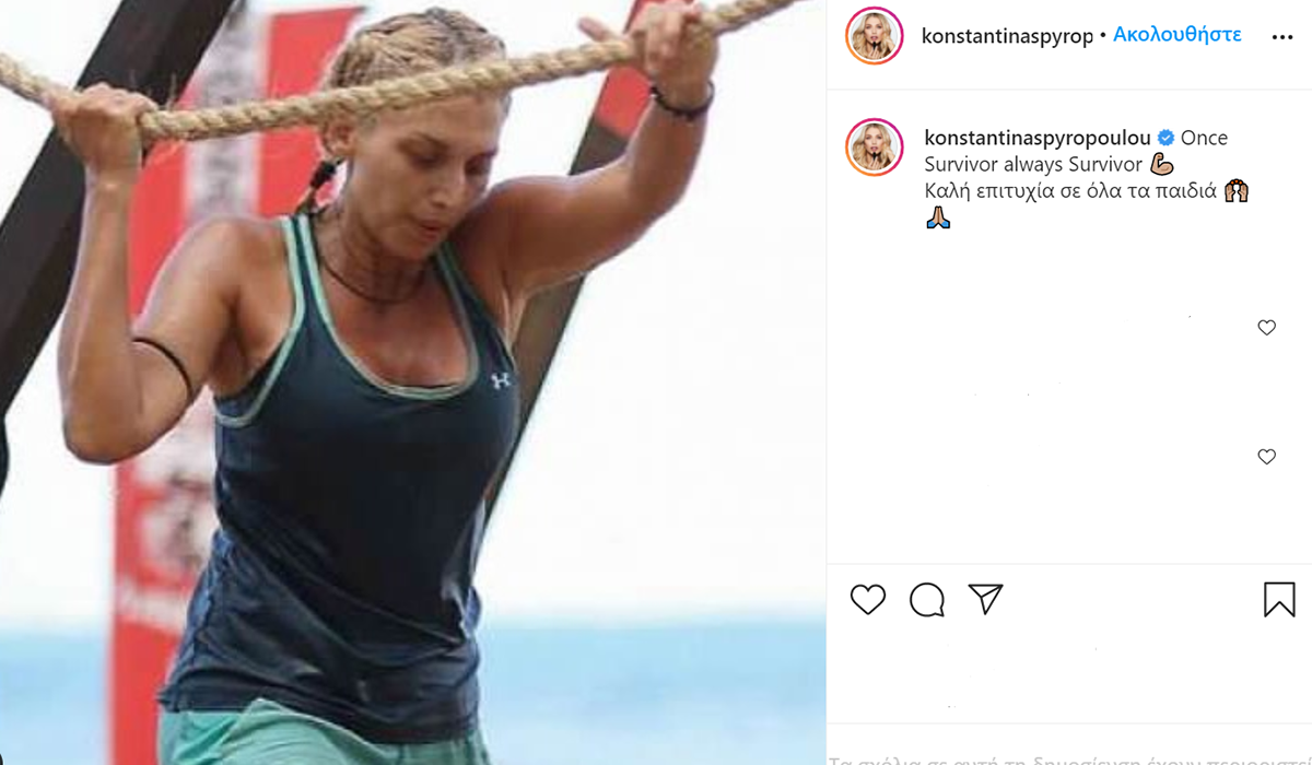 Η Κωνσταντίνα Σπυροπούλου με αφορμή την έναρξη του Survivor θυμήθηκε τα παλιά, δημοσιεύοντας μια φωτογραφία στον προσωπικό της λογαριασμό στο Instagram, από την δίκη της συμμετοχή στο παιχνίδι επιβίωσης. Η αγαπημένη παρουσιάστρια είχε παραμείνει στον Άγιο Δομίνικο, καθώς και στο στίβο μάχης για περίπου δύο μήνες. Έτσι λοιπόν θέλησε να ευχηθεί καλή επιτυχία στους καινούργιους παίκτες. Η ίδια μάλιστα έγραψε στην λεζάντα της:«Once Survivor always Survivor! Καλή επιτυχία σε όλα τα παιδιά»