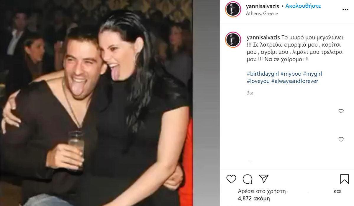 Τα γενέθλια της έχει σήμερα η Μαρία Κορινθίου και κλείνει τα 41 της χρόνια. Ωστόσο, ο άντρας της Γιάννης Αϊβάζης δεν θα μπορούσε να μην ευχηθεί δημόσια στην γυναίκα της ζωής του. Έτσι λοιπόν ο ηθοποιός διάλεξε μια φωτογραφία τους με χιουμοριστική διάθεση και την δημοσίευσε στον προσωπικό του λογαριασμό στο Instagram, γράφοντας μάλιστα ως λεζάντα: «Το μωρό μου μεγαλώνει! Σε λατρεύω ομορφιά μου, κορίτσι μου, αγρίμι μου, λιμάνι μου τρελάρα μου! Να σε χαίρομαι!».