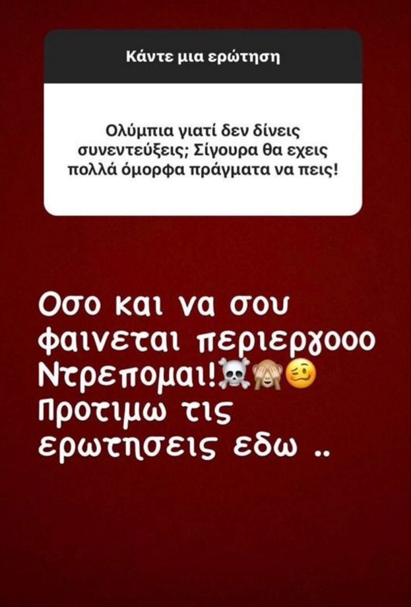 Δείτε τι έγραψε στο instastory της: «Όσο και να σου φαίνεται περίεργο ντρέπομαι! Προτιμώ τις ερωτήσεις εδώ…»