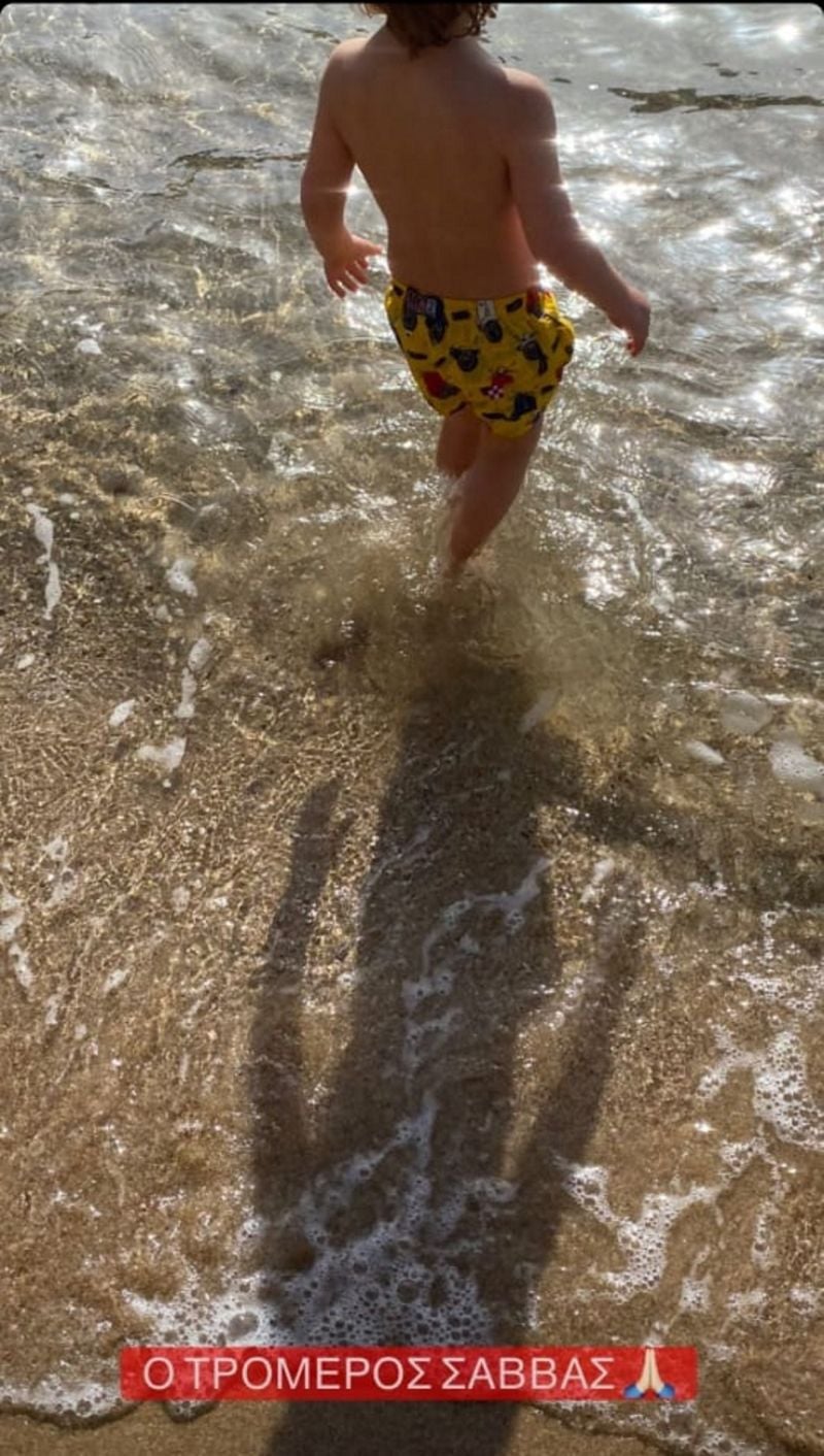 Ο 2,5 ετών γιος της, Σάββας, φαίνεται να έχει αδυναμία στο νερό, αφού τόλμησε να μπει στη θάλασσα, παρόλο που βρισκόμαστε σχεδόν στα μέσα του Ιανουαρίου.