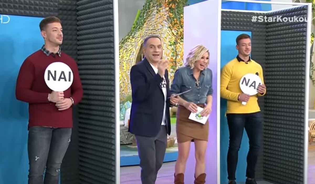 Τα δίδυμα αδέρφια Βαρουξή που γνώρισαν δημοσιότητα μέσα από το παιχνίδι του Big Brother, βρέθηκαν σήμερα καλεσμένα στην εκπομπή «Στη φωλιά των Κου Κου» και καλέστηκαν να απαντήσουν σε κάποιες ερωτήσεις που είχαν σχέση με την ομοιότητα τους.