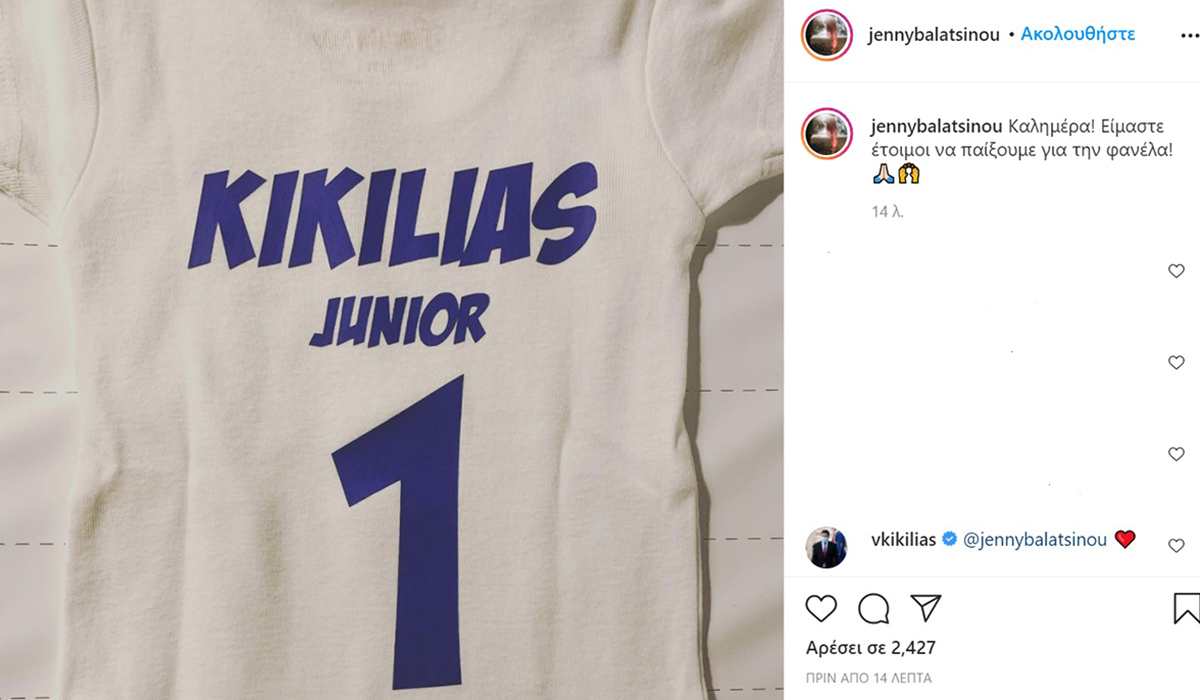 Η Τζένη Μπαλατσινού διανύει μια πολύ όμορφη περίοδο στη ζωή της καθώς ανήμερα τα Χριστούγεννα έφερε στον κόσμο το πρώτο της παιδί με τον σύζυγο της Βασίλη Κικίλια. Η παρουσιάστρια συχνά μοιράζεται με του διαδικτυακούς της φίλους στιγμές από την καθημερινότητα της. Ωστόσο η ίδια ανάρτησε μια φωτογραφία στον προσωπικό της λογαριασμό στο Instagram γράφοντας: «Καλημέρα! Είμαστε έτοιμοι να παίξουμε για την φανέλα! 🙏🏻🙌», με τον υπουργό Υγείας να σχολιάζει τη δημοσίευση της με μια κόκκινη καρδιά.