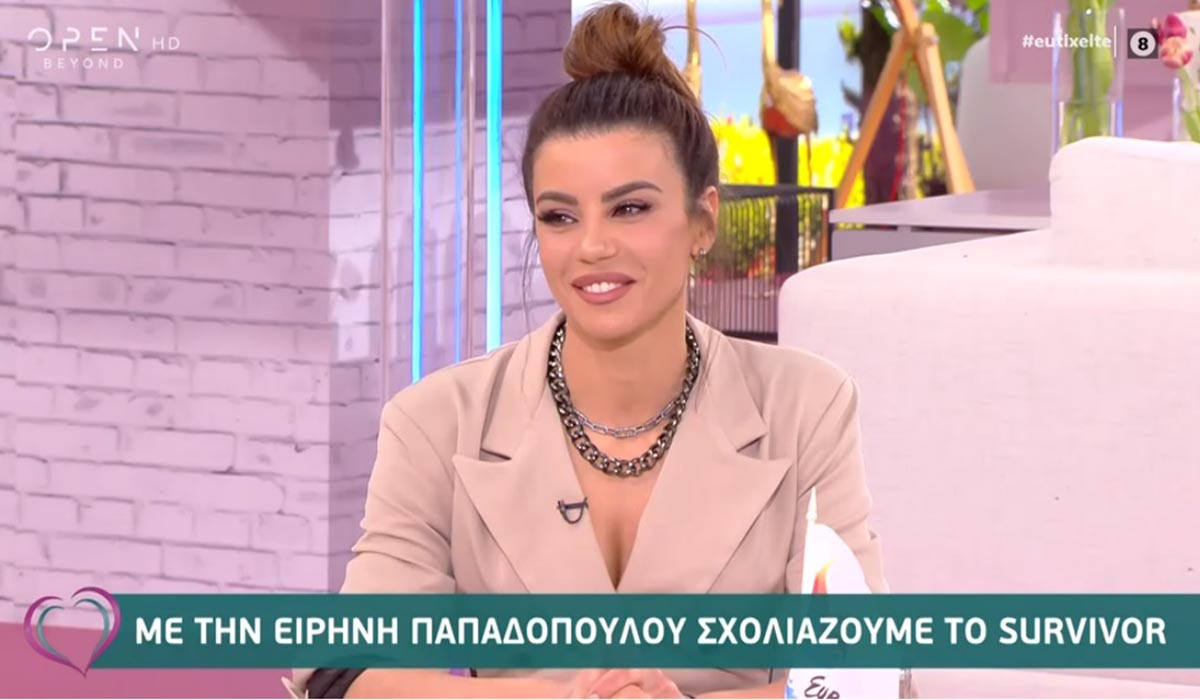 Η Ειρήνη Παπαδοπούλου βρέθηκε καλεσμένη στην εκπομπή «Ευτυχείτε». Η γοητευτική τραγουδίστρια αποκάλυψε, μεταξύ άλλων τους λόγους για τους οποίους είχε αποχωρήσει οικειοθελώς από το «Survivor» όπου συμμετείχε πριν από 4 χρόνια. Επίσης δεν δίστασε να αναφέρει τι της δίδαξε το παιχνίδι επιβίωσης και να σχολιάσει τους συμμετέχοντες του φετινού Survivor και την στάση τους, σχετικά με την με την αποχώρηση της Κάτια Ταραμπάνκο.