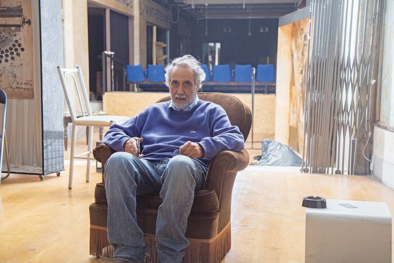 Εδώ θα πω μεγάλη ιστορία: Ήμουν αθλητής του στίβου και το σχολείο με προωθούσε για τους Βαλκανικούς Αγώνες. Οι γονείς μου κατά τη διάρκεια των ατελείωτων προπονήσεων έφεραν έναν εξαιρετικό καρδιολόγο για να με εξετάσει, με σκοπό τους αγώνες. Ο γιατρός απεφάνθη ότι δεν θα έπρεπε να κάνω καθόλου γυμναστική, πόσο μάλλον να τρέχω. Έτσι με έκλεισαν για έναν μήνα σε μία βιβλιοθήκη, τόσο άντεξα, και έπειτα ίδρυσα ένα θεατρικό όμιλο, στον οποίο θα μαζευόντουσαν άνθρωποι που αγαπούν το θέατρο. Νόμιζα ότι θα μαζευτούμε πολλοί, όμως τελικά ήμασταν τρεις! Ανέβασα ένα θεατρικό έργο στο κολέγιο, το «Κύκνειο άσμα» του Τσέχοφ.