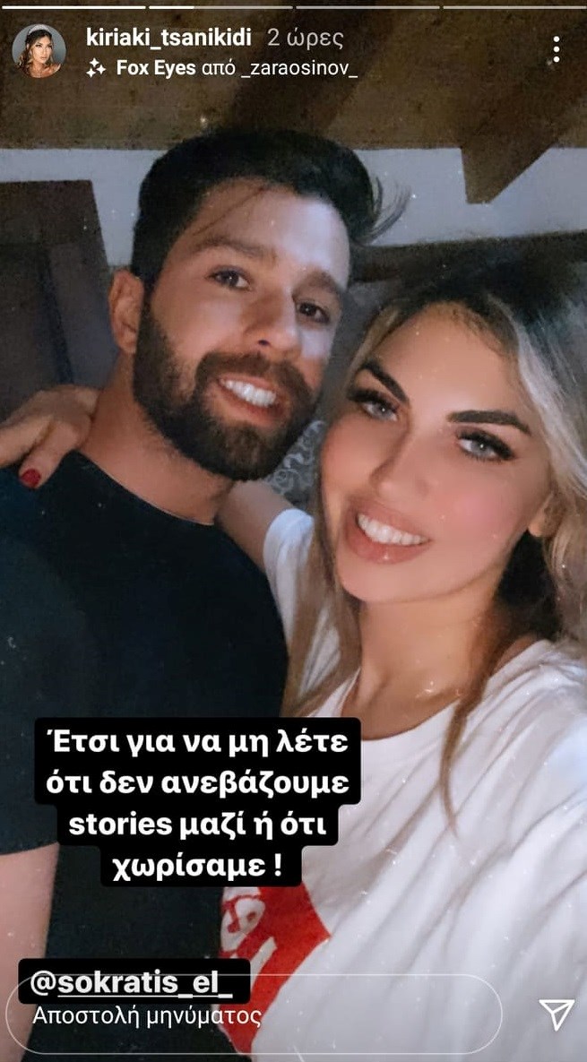 «Έτσι για να μη λέτε ότι δεν ανεβάζουμε stories μαζί ή ότι χωρίσαμε» έγραψε χαρακτηριστικά η Κυριακή Τσανικίδη
