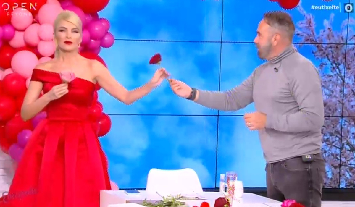 Με την Κατερίνα Καινούργιο να λέει για το τριαντάφυλλο του συντρόφου της: «Αυτό βρήκε μόνο;».