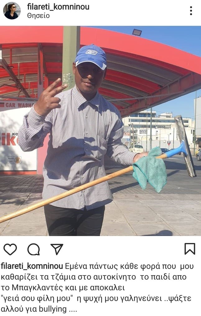 Η Φιλαρέτη Κομνηνού θέλησε μέσα από τον προσωπικό της λογαριασμό στο Instagram, να περάσει το δικό της μήνυμα κατά του bullying. Η αγαπημένη ηθοποιός η οποία, φέτος πρωταγωνιστεί στην τηλεοπτική σειρά «Αγγελική», δημοσίευσε μια φωτογραφία του παιδιού από το Μπαγκλαντές που βλέπει στο φανάρι και της καθαρίζει τα τζάμια του αυτοκινήτου της.