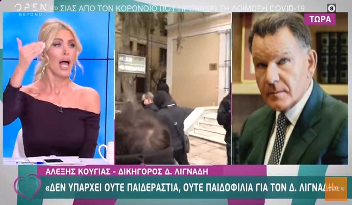 «Πάω να σας κάνω μια πολύ ευγενική ερώτηση, με ευγενικό τρόπο, ούτε σας προσβάλλω ούτε τίποτα. Το έκλεισε επειδή τον ρώτησα; Αν είναι δυνατόν! Μα πείτε μου! Μιλάω με τον πιο ευγενικό τρόπο, κάνω τη πιο φυσιολογική ερώτηση και μου κλείνει το τηλέφωνο. Πραγματικά δεν μπορώ να καταλάβω! Πώς δεν έχει παιδεραστία κ. Κούγια; Πώς δεν έχει παιδοφιλία; Το είπε η κατάθεση, 14χρονα αγόρια ήταν. Για χαζούς μας περνάει; Μίλησα με τον πιο ευγενικό τρόπο» είπε φανερά εκνευρισμένη η παρουσιάστρια.