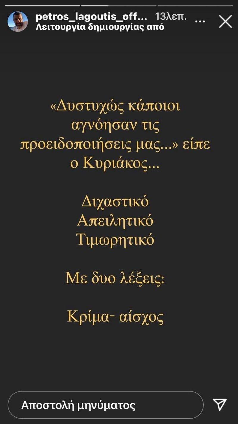 Ένας από αυτούς είναι και ο Πέτρος Λαγούτης, που συχνά τοποθετείται μέσα από τα social media για επίκαιρα θέματα που απασχολούν την κοινωνία χωρίς να φοβάται να πει ανοιχτά τη γνώμη του.