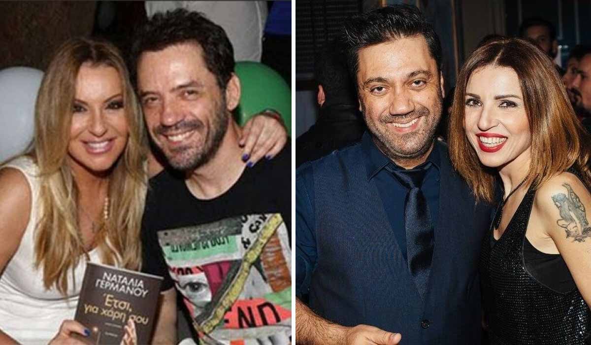 Στο «κλικ» απεικονίζονται δύο πρώην ζευγάρια που συνεχίζουν μέχρι σήμερα να διατηρούν άριστες σχέσεις παρότι έχουν προχωρήσει στην προσωπική τους ζωή: Ναταλία Γερμανού – Θάνος Καλλίρης, Ευρυδίκη – Γιώργος Θεοφάνους.