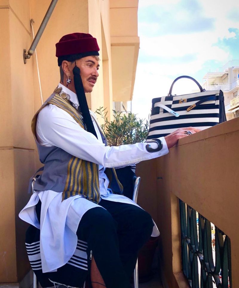 Συγκεκριμένα ο γνωστός σχεδιαστής ανάρτησε στους προσωπικούς του λογαριασμούς στα social media μία φωτογραφία, στην οποία ποζάρει ως «σύγχρονος τσολιάς», έχοντας μία τσάντα Hermes στα χρώματα της ελληνικής σημαίας.