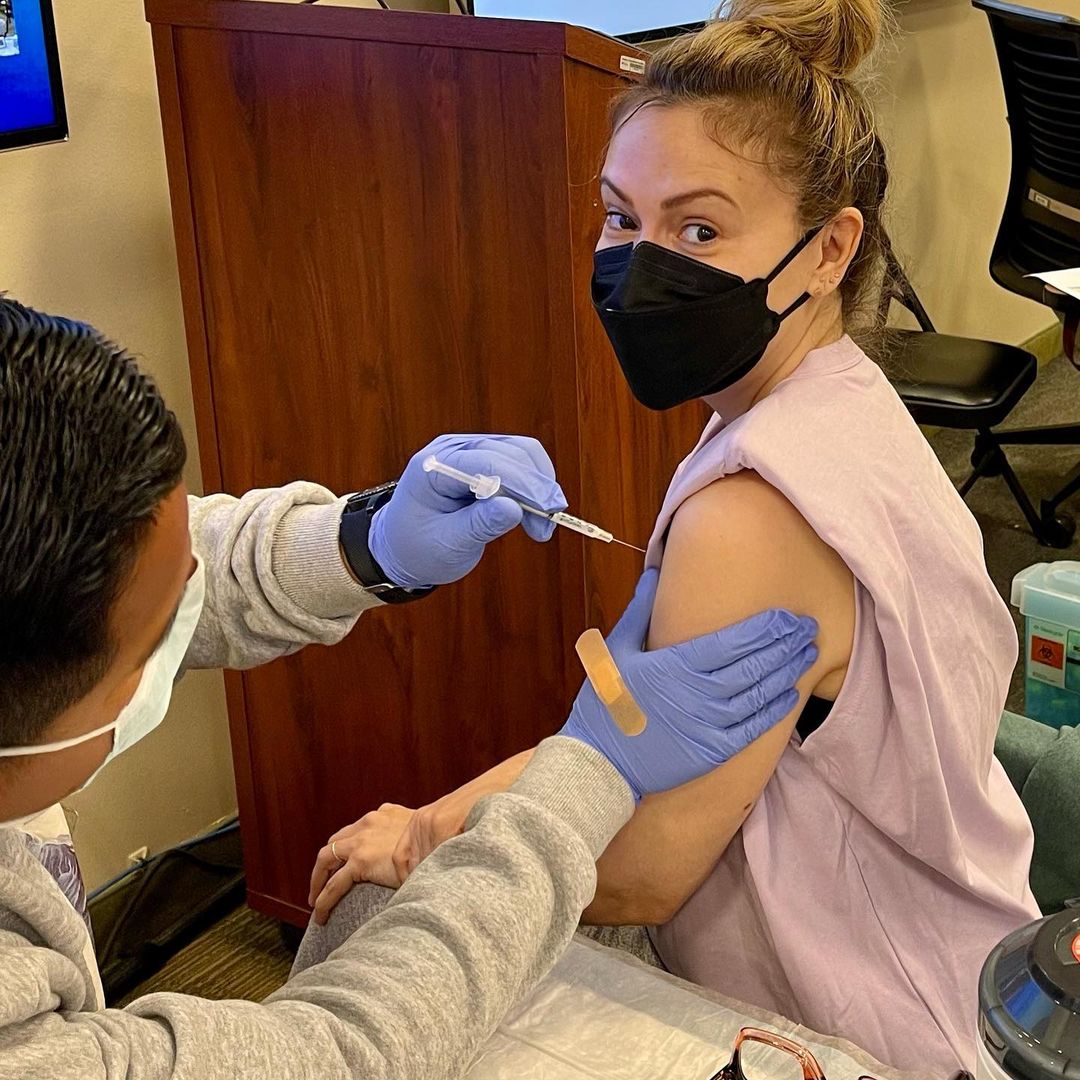 Η 48χρονη ηθοποιός πόσταρε στη συνέχεια τη φωτογραφία της στο instagram με λεζάντα: «Ευχαριστώ για το εμβόλιο covid. Η επιστήμη είναι καταπληκτική».