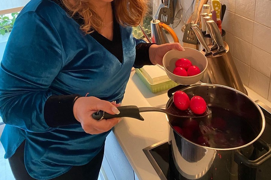 Η γνωστή κυρία της σόουμπιζ άφησε για λίγο τις επαγγελματικές της υποχρεώσεις και μπήκε στην κουζίνα να βάψει τα αβγά της και να ετοιμάσει όλες τις λιχουδιές για το Πάσχα.