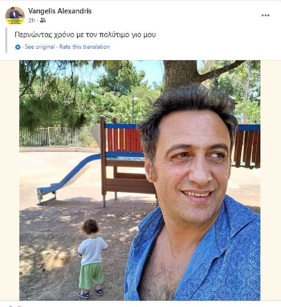 Ο Βαγγέλης Αλεξανδρής έγινε πατέρας πέρυσι και βιώνει τις ομορφότερες στιγμές της ζωής του. Ο γιος του, του άλλαξε τη ζωή και όταν βρίσκει ελεύθερο χρόνο χωρίς δεύτερη σκέψη του τον αφιερώνει. «Περνώντας χρόνο με τον πολύτιμο γιο μου», έγραψε στη λεζάντα.