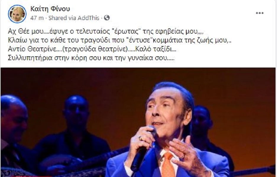 Η Καίτη Φίνου αποχαιρέτησε τον Τόλη Βοσκόπουλο με ένα μήνυμα στο facebook.