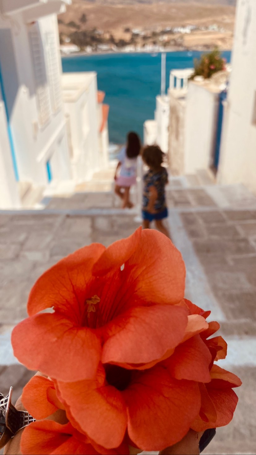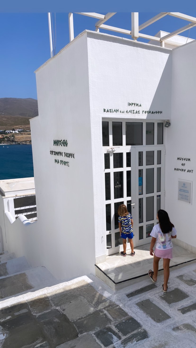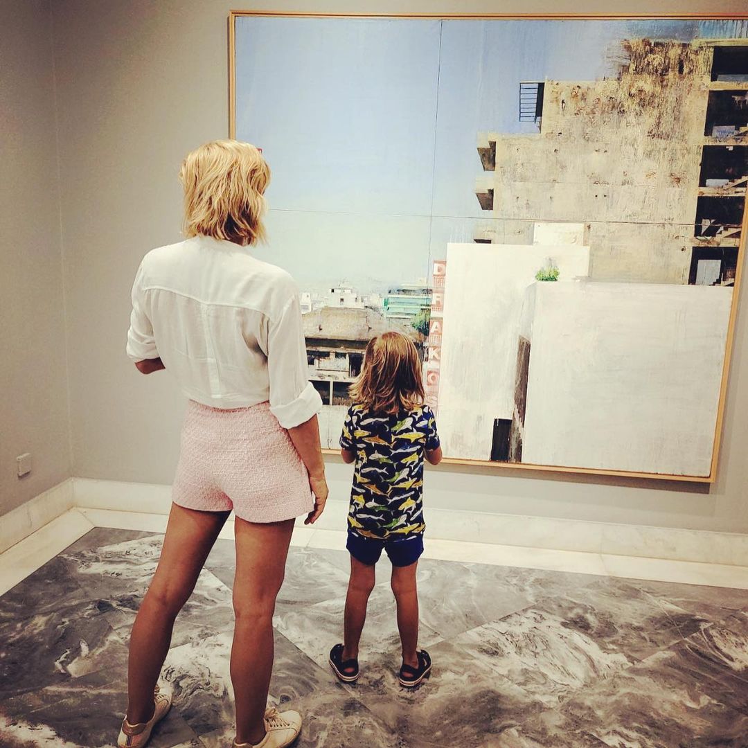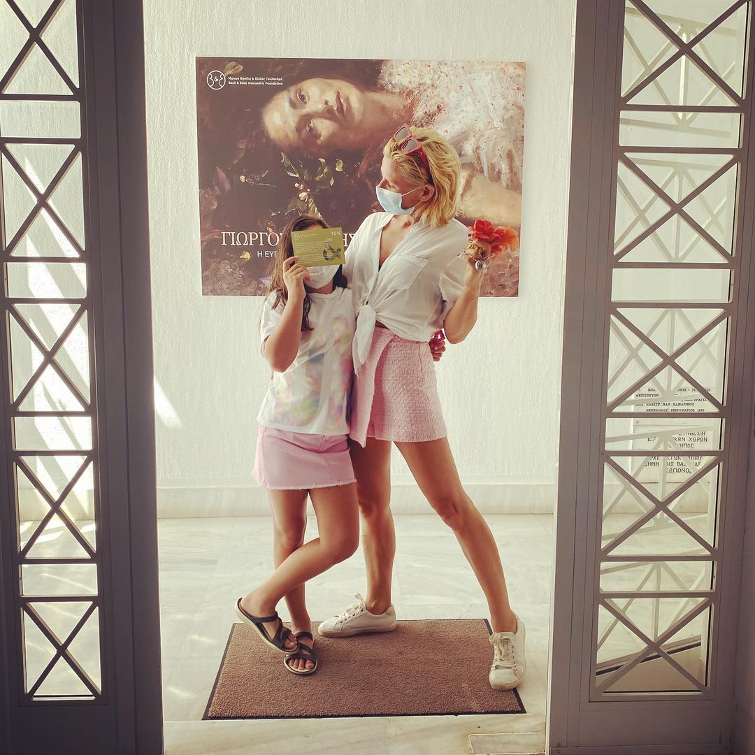 Έβγαλε φωτογραφίες με τα παιδιά της στα σοκάκια του νησιού ενώ δεν παρέλειψαν να επισκεφθούν το Μουσείο Σύγχρονης Τέχνης. «Κάθε φορά που θα είμαστε εδώ, θα βγάζουμε την ίδια φωτογραφία. Έτσι έχουμε πει μεταξύ μας. Κρατάμε την υπόσχεση μας και φέτος βλέπουμε την έκθεση του Γιώργου Ρόρρη.