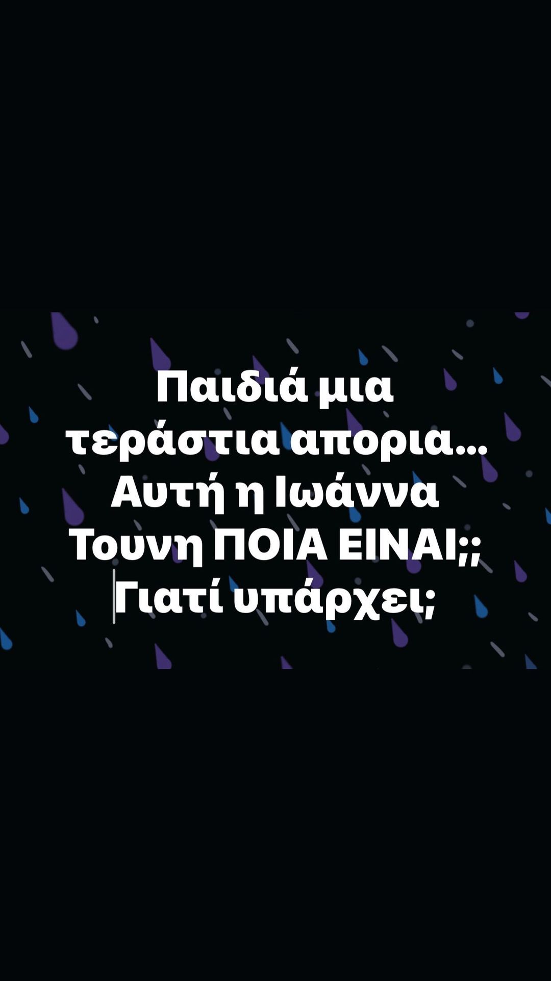 Μετά τον Λάμπρο Κωνστανταρά ενοχλημένος με τις δηλώσεις της και ο γνωστός ηθοποιός έγραψε στο instastory του: «Παιδιά μια τεράστια απορία. Αυτή η Ιωάννα Τούνη ΠΟΙΑ ΕΙΝΑΙ; Γιατί υπάρχει;»