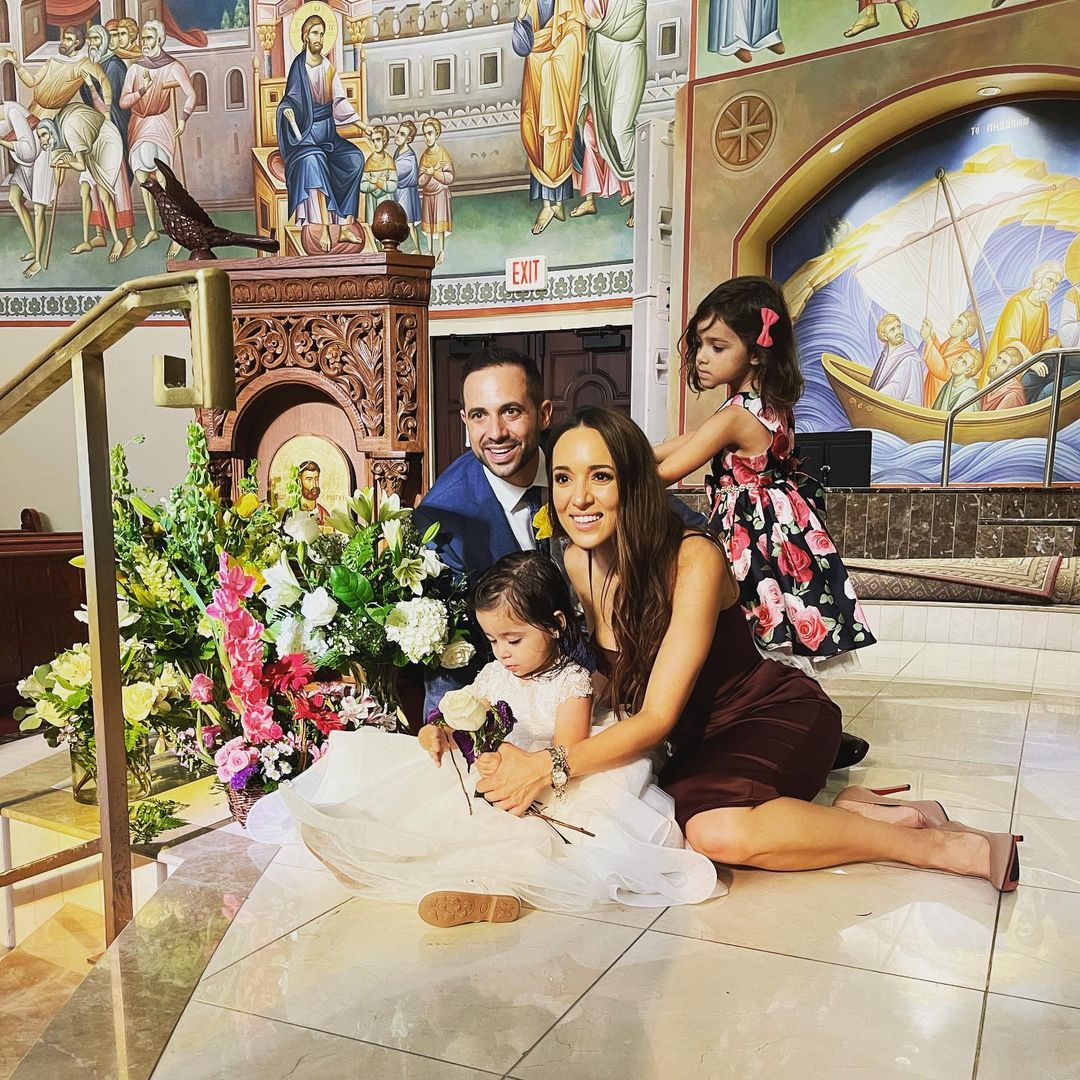 Χαμογελαστοί οι νονοί φωτογραφήθηκαν με τη νεοφώτιστη και στη συνέχεια δημοσίευσαν φωτογραφίες στο instagram.