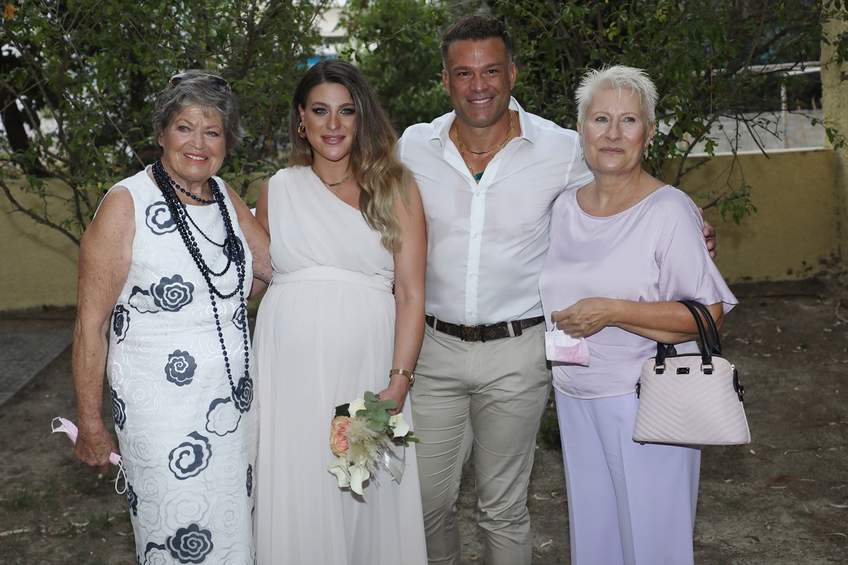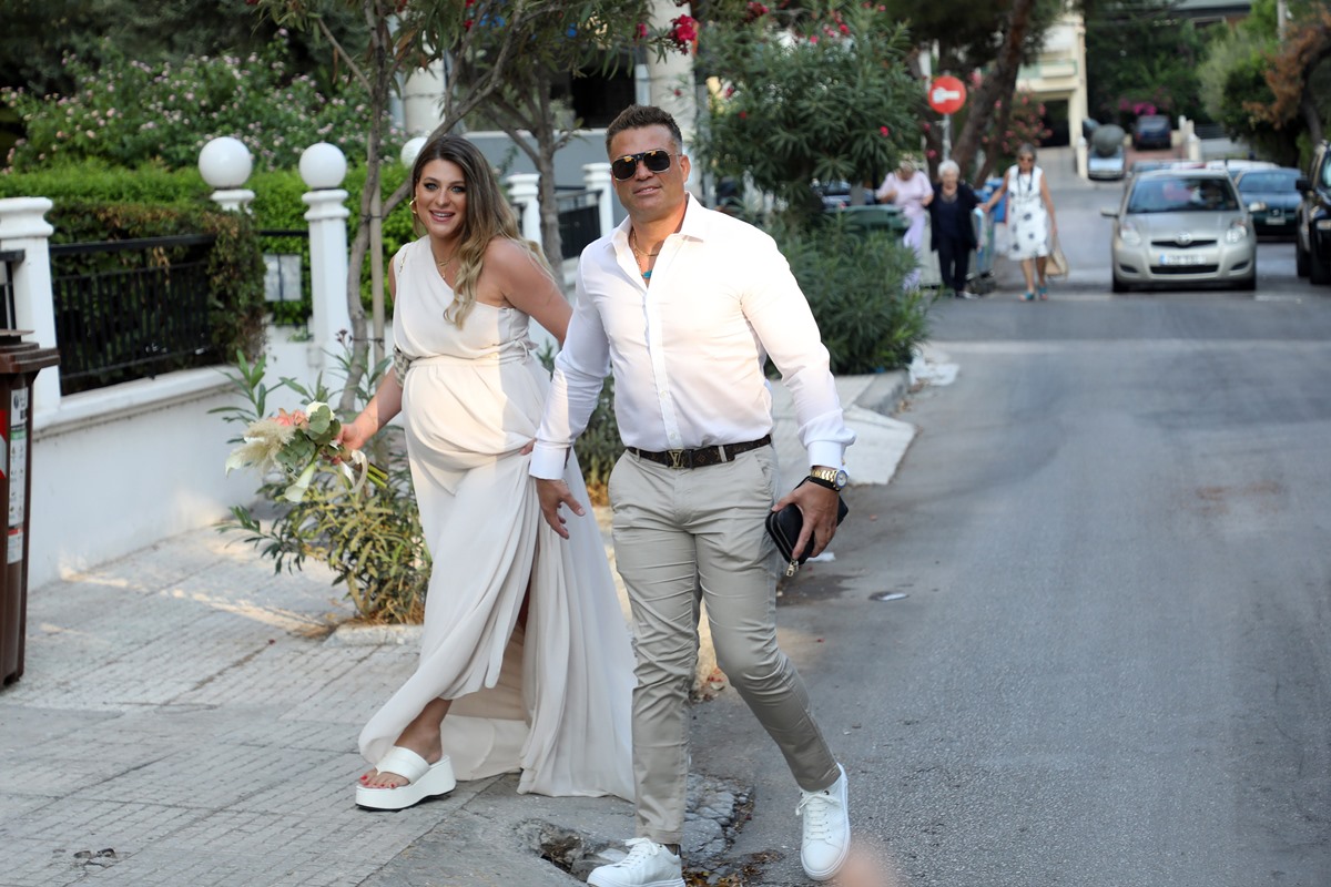 Το ζευγάρι παντρεύτηκε στο Δημαρχείο της Γλυφάδας με τη Βαλεντίνη να είναι σε προχωρημένη εγκυμοσύνη και τον ηθοποιό να μη την αφήνει στιγμή από τα μάτια του. Η Μαρία Καλάβρια που είναι φίλη τους ήταν η κουμπάρα τους! Ο φωτογραφικός μας φακός ήταν εκεί και τα κατέγραψε όλα.