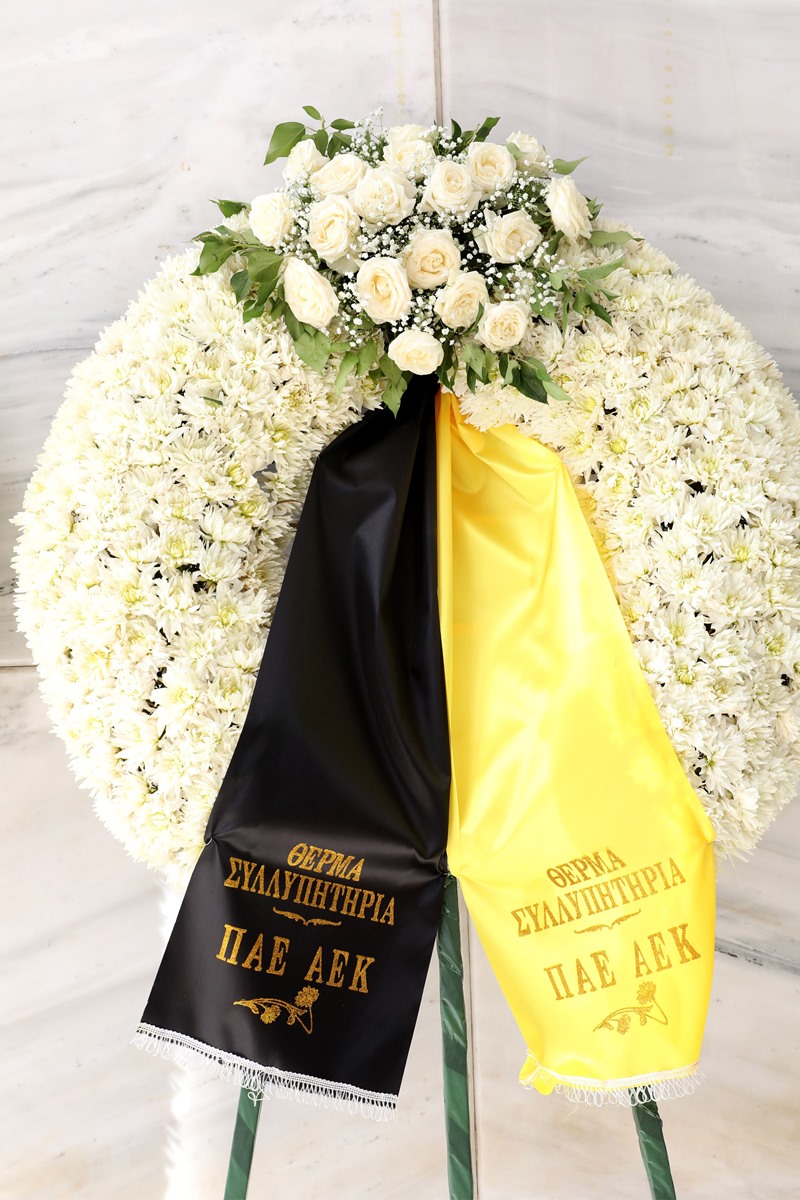 Ευχαριστούμε τον Δήμαρχο Αθηναίων Κώστα Μπακογιάννη και τον Αντιδήμαρχο Ελευθέριο Γ. Σκιαδά – Eleftherios G. Skiadas που θέλησαν να τον τιμήσουν με την ευγενική παραχώρηση από την πόλη που αγάπησε, έζησε και υπηρέτησε ως Αντιδήμαρχος, χώρου στο Α’ Κοιμητήριο Αθηνών για την ταφή του. Ευχαριστούμε το Υπουργείο Πολιτισμού και Αθλητισμού και την Υπουργό και προσωπική του φίλη, κυρία Λίνα Μενδώνη για την αγάπη και τα θερμά λόγια. Ευχαριστούμε την AEK FC / ΠΑΕ ΑΕΚ και το ΠΑΣΟΚ, τις μεγάλες του αγάπες, αλλά και το Κομμουνιστικό Κόμμα Ελλάδας για τα ιδιαιτέρως τιμητικά και άκρως συγκινητικά τους λόγια.