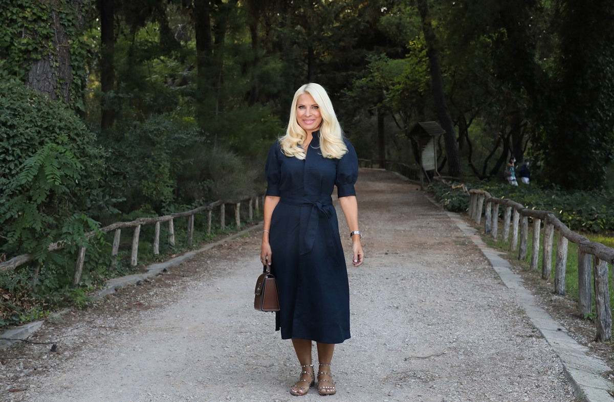 Η συνάντηση έγινε στο Βοτανικό Κήπο με την παρουσιάστρια να φτάνει φορώντας ένα ωραίο, μπλε φόρεμα συνδυασμένο με σανδάλια.