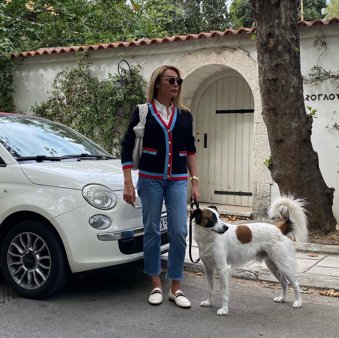 Το απόγευμα της Κυριακής άφησε για λίγο τις επαγγελματικές και οικογενειακές υποχρεώσεις και βγήκε μια βόλτα στη Κηφισιά μαζί με τον τετράποδο φίλο της. Η παρουσιάστρια με φθινοπωρινό outifit πόζαρε ενώ έκανε βόλτες με το σκύλο της και στη συνέχεια δημοσίευσε φωτογραφίες της στο instagram.