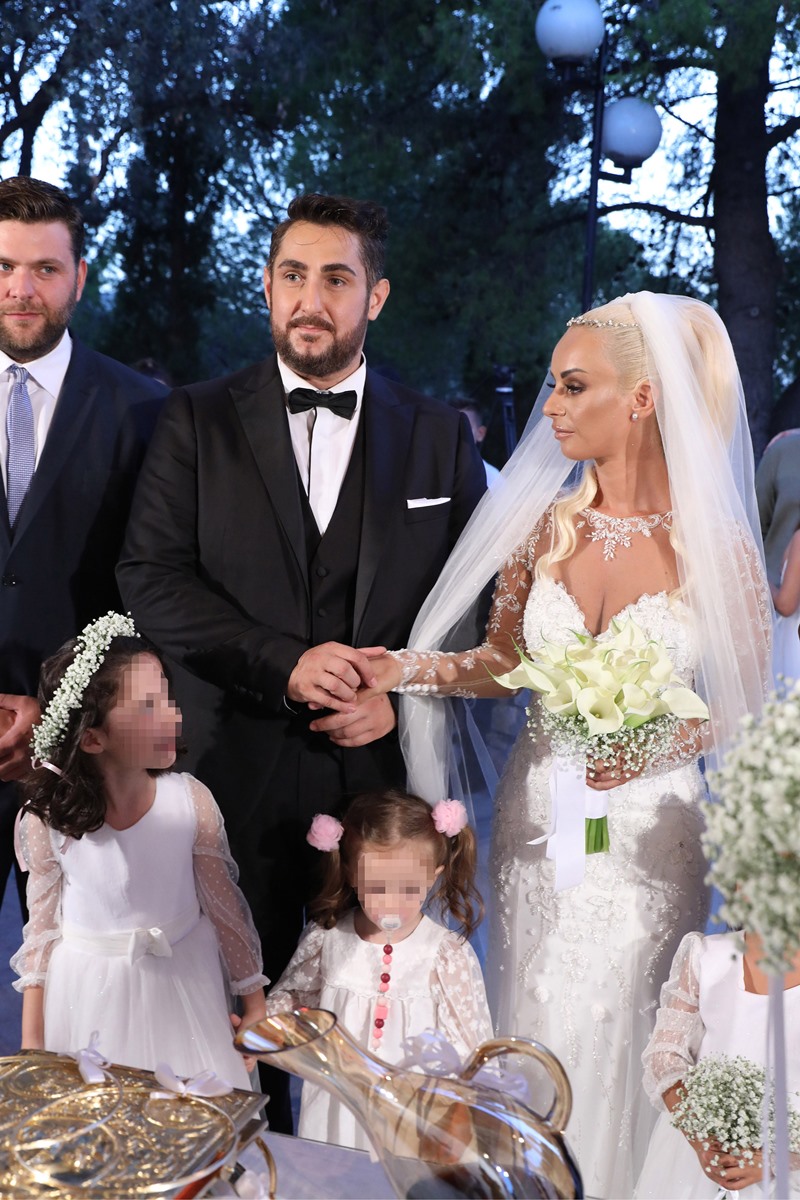 Η νύφη, υπέρλαμπρη, φορώντας ένα νυφικό διά χειρός της σχεδιάστριας Φαίδρας Θεοδωρίδου (η designer σχεδίασε και τα βαφτιστικά ρούχα της μικρής Αργυρώς), έφτασε στην εκκλησία συνοδευόμενη από τον πατέρα της, με τον τραγουδιστή να την περιμένει κρατώντας στην αγκαλιά του την κορούλα τους!