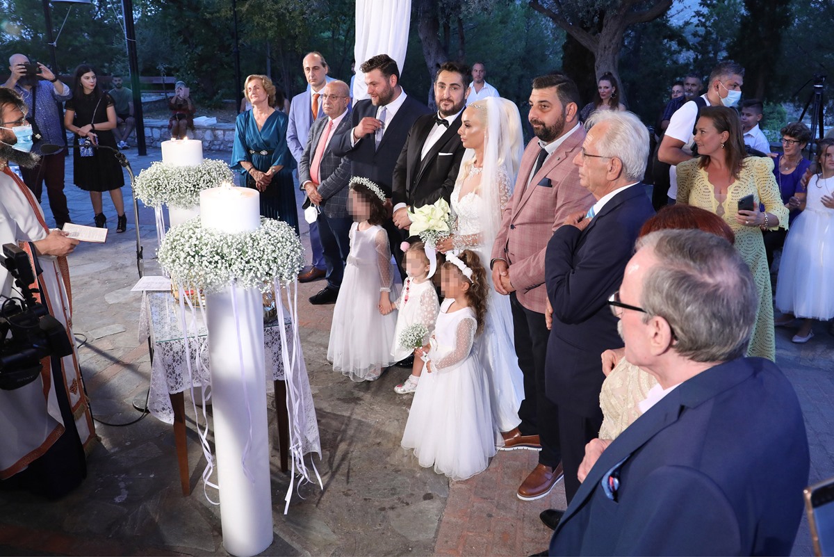 Μετά το μυστήριο του γάμου και της βάφτισης ακολούθησε γαμήλιο γλέντι στον Σπάγγο στο Μικρολίμανο, με τους καλεσμένους να τηρούν όλα τα μέτρα για τον κορονοϊό.