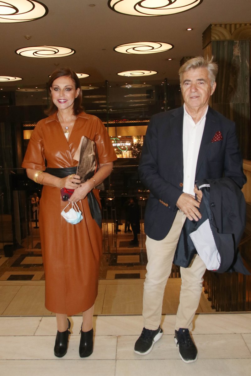 Η ηθοποιός ντυμένη κομψά πήγε το βράδυ της Τετάρτης στο θέατρο Παλλάς να δει την παράσταση «Το τρίτο στεφάνι» συνοδευόμενη από τον πρόεδρο του Πανιωνίου, Κυριάκο Σκούρα. Αν πρόκειται για το νέο της σύντροφο ή απλά για έναν καλό φίλο ο χρόνος θα το δείξει.