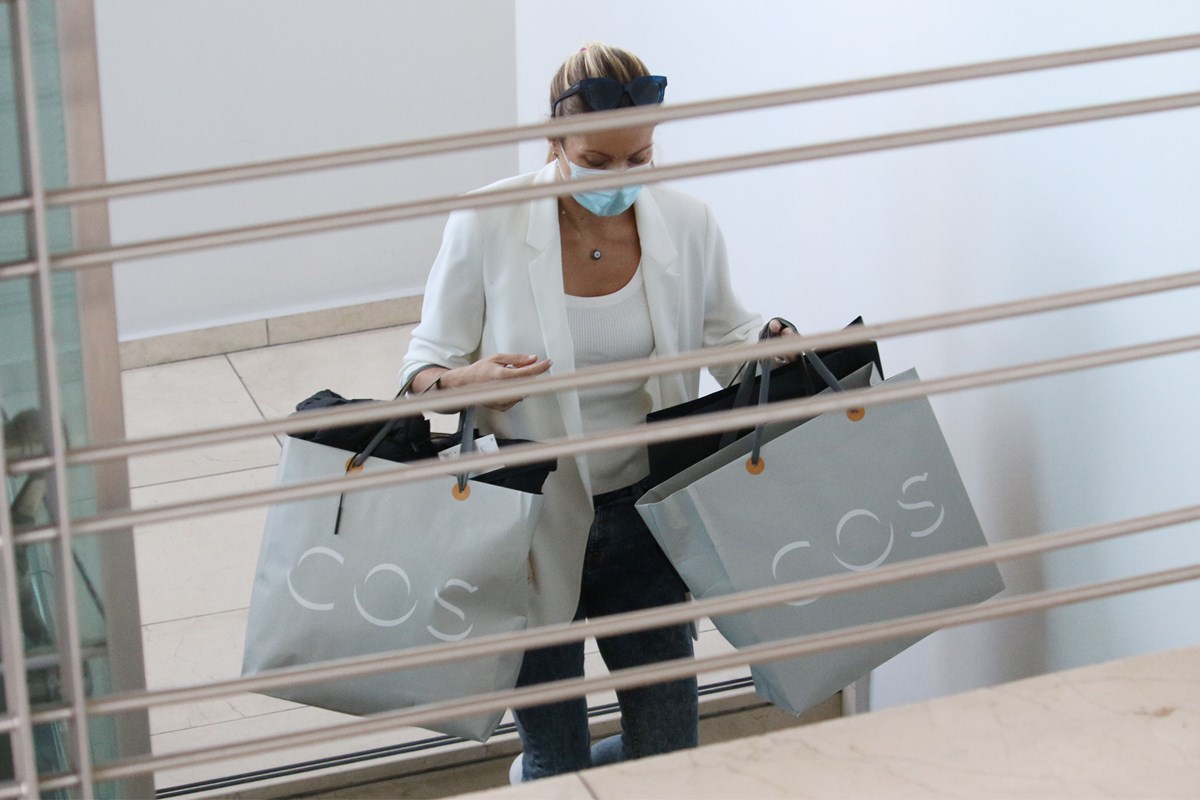 Ο φωτογραφικός μας φακός την απαθανάτισε σε εμπορικό κέντρο του Αμαρουσίου να φεύγει κρατώντας πολλές τσάντες.