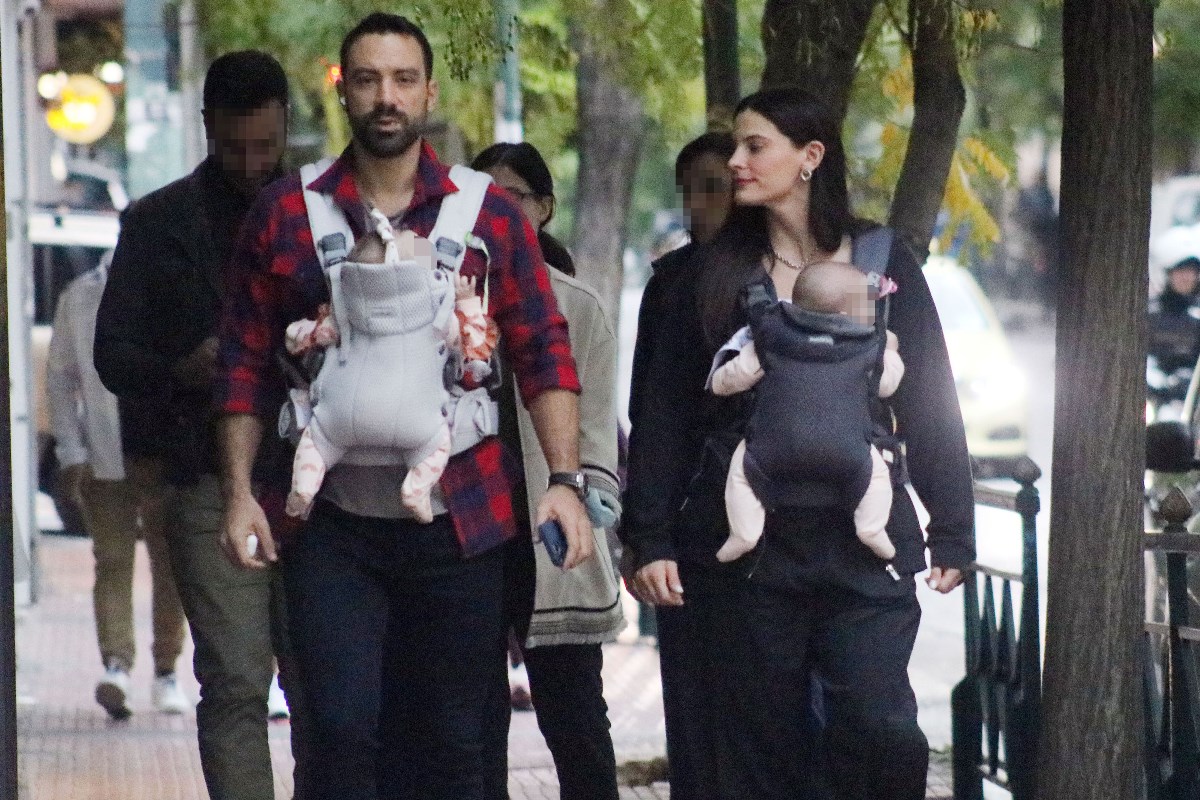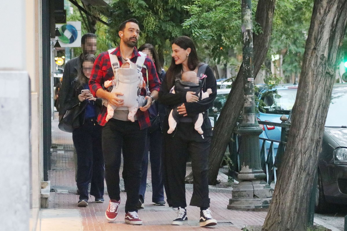 Το ζευγάρι με τις κόρες του κάνουν καθημερινές βόλτες σε μία από αυτές τους απαθανάτισε ο φωτογραφικός μας φακός. Ο παρουσιαστής με τη σύζυγό του φόρεσαν τα μάρσιπό τους βάζοντας μέσα τις κορούλες τους και βγήκαν βόλτα στο Κολωνάκι. Ντυμένοι casual έκαναν τις βόλτες τους περνώντας όμορφες οικογενειακές στιγμές.