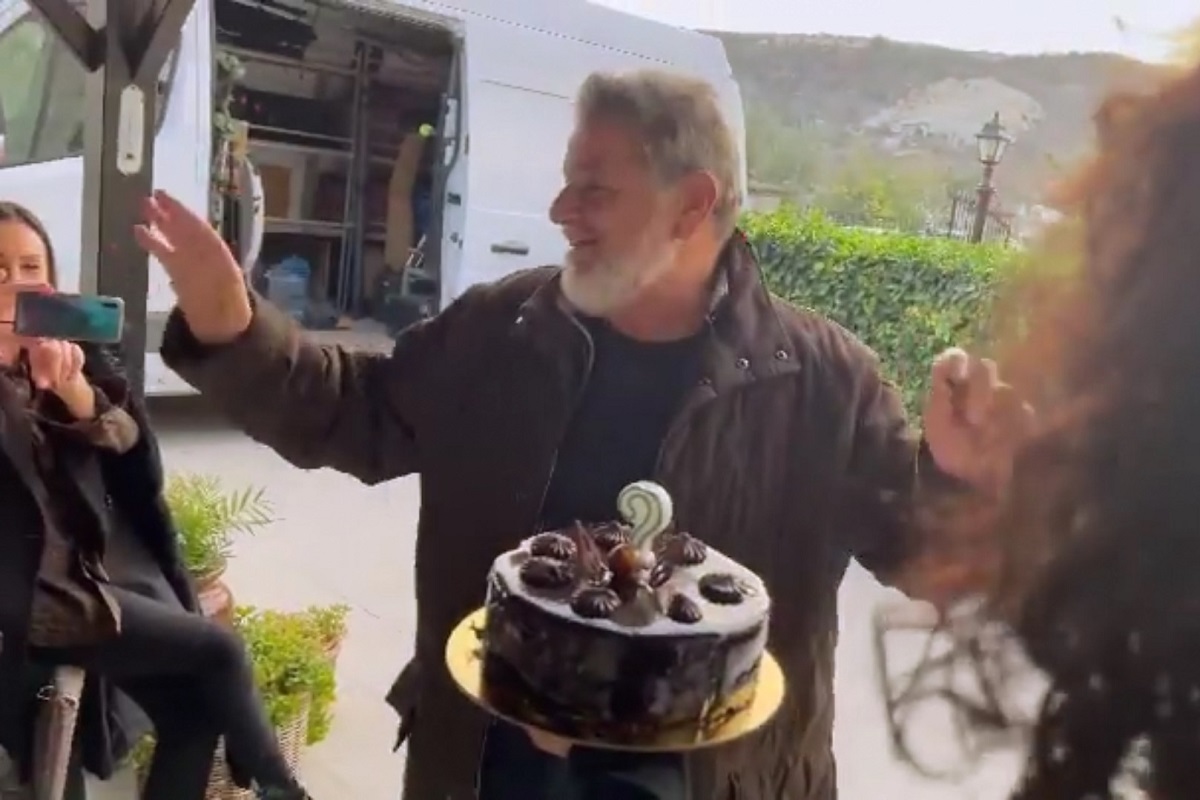Ο καταξιωμένος ηθοποιός έγινε 70 χρονών και ο Ανδρέας Γεωργίου με μία κυρία από την παραγωγή του έκαναν έκπληξη τούρτα. Του είπαν όλοι μαζί το γενέθλιο τραγούδι και χαμογελαστός έκανε ευχή και έσβησε το κεράκι του.