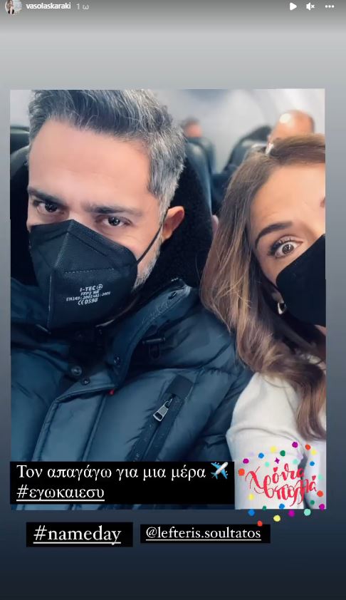 Η ηθοποιός πόσταρε φωτογραφία του συζύγου της στο instagram και του ευχήθηκε με μια μαντινάδα: «Χρόνια πολλά σου εύχομαι μέσα από την καρδιά μου και κάθε σου γιορτή να την περνάς κοντά μου. #happynameday #mylove @lefteris.soultatos #tiamo #oggiseisolomio».