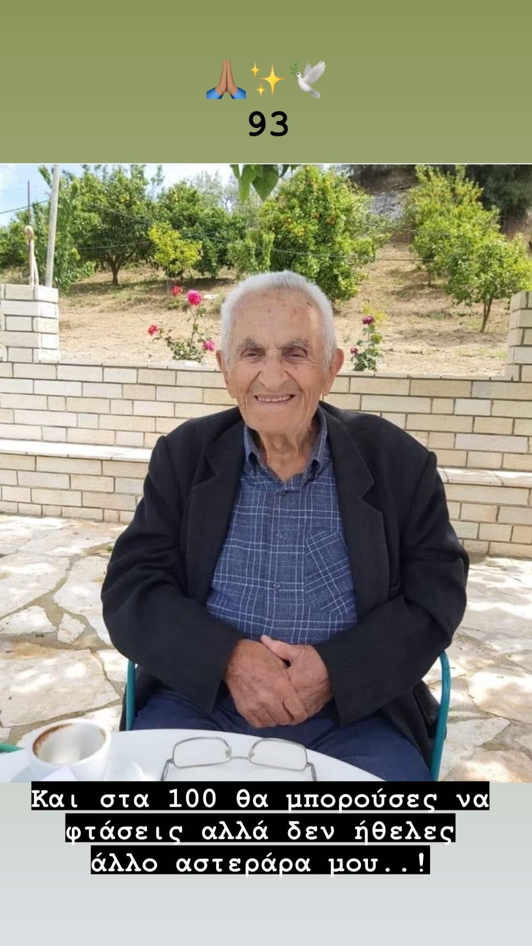 RIP Στέφανε Τορουνίδη. Και στα 100 θα μπορούσες να φτάσεις αλλά δεν ήθελες άλλο αστεράρα μου», έγραψε σε ποστ στο instastory της.